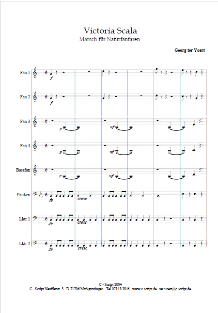 Besetzung: F 4 stimm vierstimm Fanfarensatz, Landknechtstrommeln Optional mit Bassfanfare und Pauken.