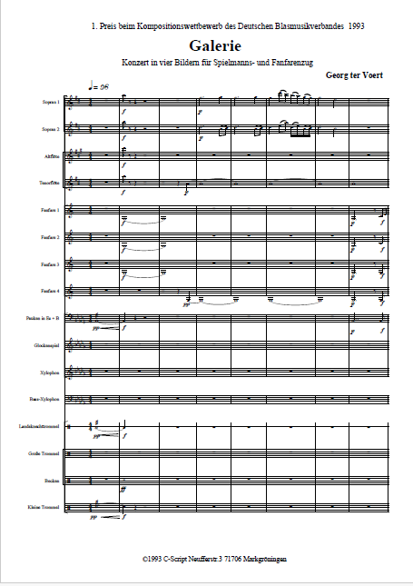 Konzert für Spielmanns- und Fanfarenzug. Gewann 1993 den ersten Preis des Kompositionswettbewerbs des BDBV in der Wertung für kombinierte Züge. Vierstimmiger Flötensatz - vierstimmiger Fanfarensatz - übliche Besetzung plus Pauken.