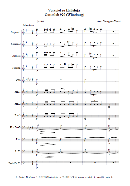 vierstimmiger Fanfarensatz , Lyra, Pauken und Schlagwerk auch mit Orgelstimme.