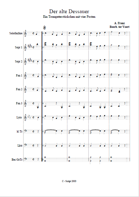 für Solotrompete oder Solofanfare (Solostimme angeblich nach Anton Franz)