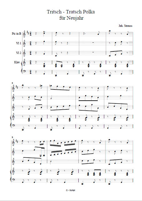 Besetzung: 4 stimm 2 Fagotte, Piccolo, Klavier