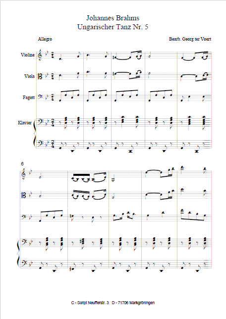 Besetzung: 4 stimm Violine, Viola, Fagott, Klavier