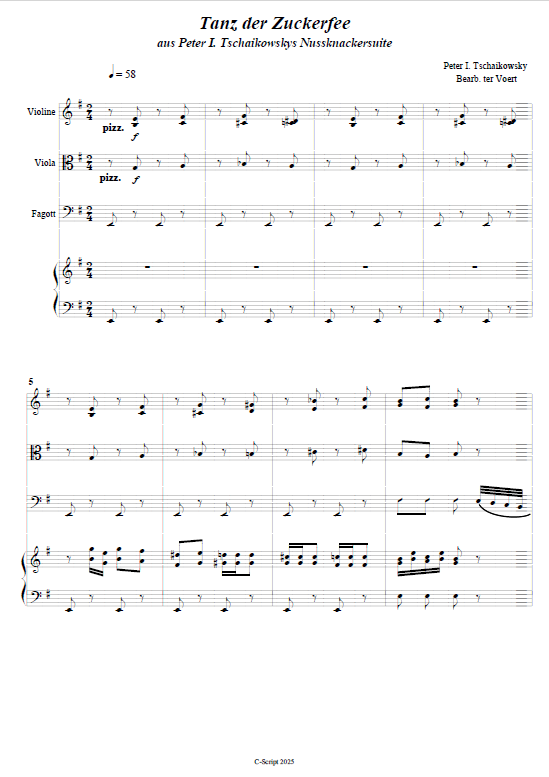 Besetzung: Violine, Viola, V-Cello (Fagott), Klavier