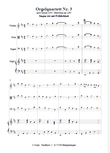 Besetzung: Kamm 4 stimm Quartett für Violine, Viola, Fagott und Orgel